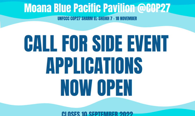Strong Pacific interest in the Moana Blue Pacific Pavilion at the Twenty-seventh Conference of the Parties to the United Nations Framework Convention on Climate Change (UNFCCC COP27) in November has seen an extension in the deadline for side event submissions to 17 September 2022.